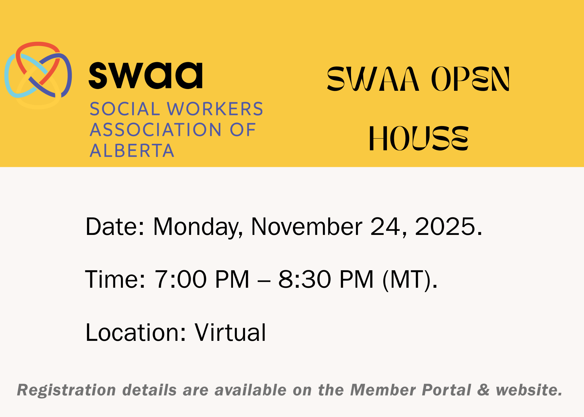 To ensure all interactions within the The Social Workers Association of Alberta member portal are safe and friendly, The Social Workers Association of Alberta staff will oversee the member portal activity and will review, edit, and delete any inappropriate content that has been submitted. This includes abusive or offensive language, spam, malicious files, or other disrespectful contact. To help provide a productive environment, please report any offensive or suspicious activity to The Social Workers Association of Alberta staff. Please note that not all user-submitted content is representative of The Social Workers Association of Alberta, nor does it necessarily represent the views of The Social Workers Association of Alberta, its staff or members.