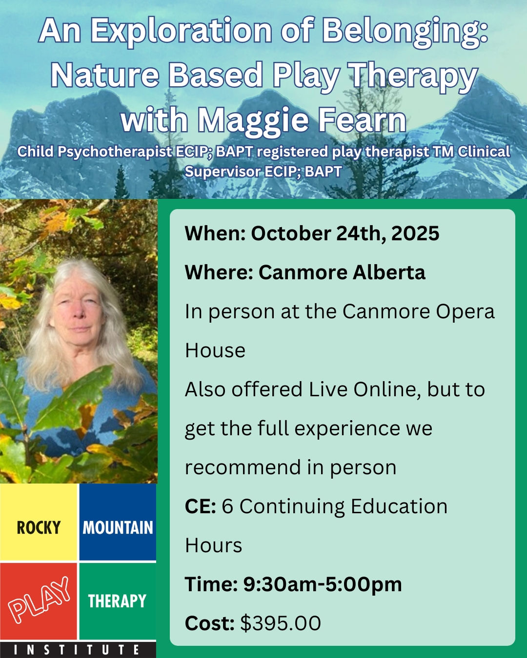 Event Description: The course will appeal to those working with children, youth, and adults. You are invited to Canmore, Alberta in October 2025 to experience the profoundly therapeutic powers of play in and with nature. We will be exploring what it feels like to reconnect with Earth as home, and, drawing from your current cultural practices, you will have the opportunity to contribute your own sense of what it means to belong.